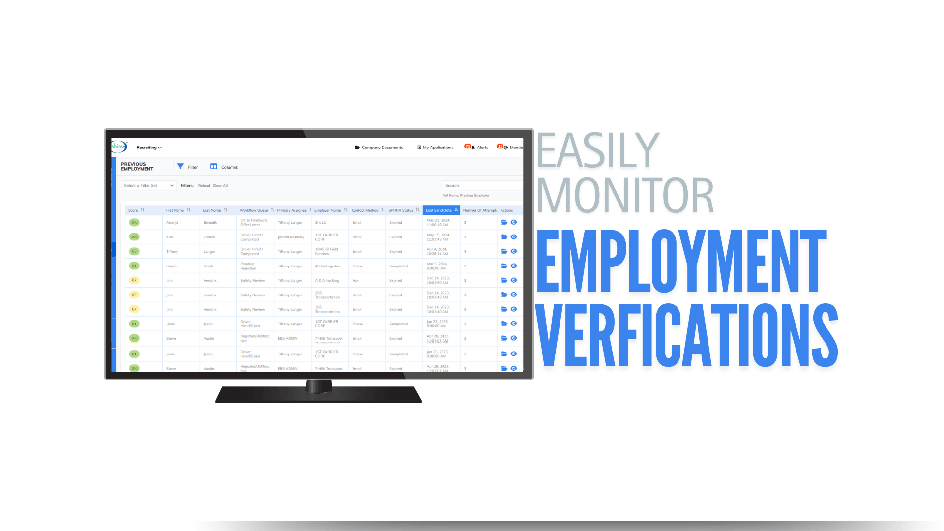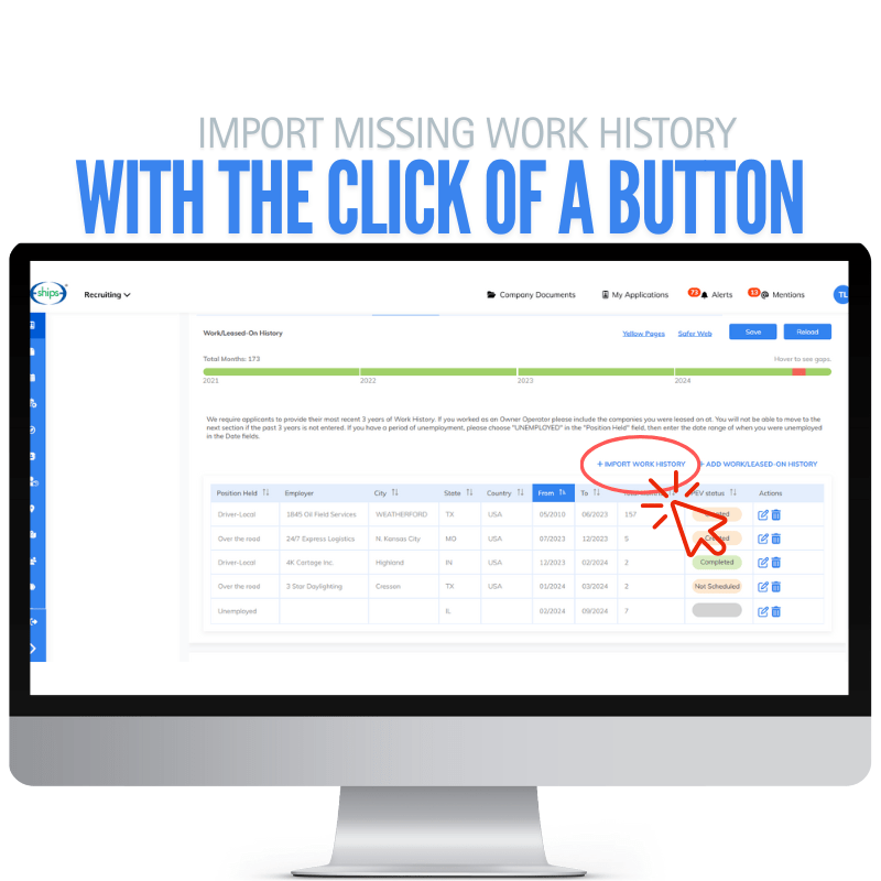 Run and process applicant employment history, criminal records and driving reports, as well as FMCSA Clearinghouse and PSP checks without leaving the ATS. SHIPS seamlessly integrates with all major background reporting providers.